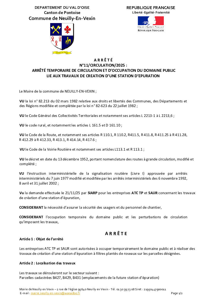 ARRETE MUNICIPAL : Travaux Station d'Epuration