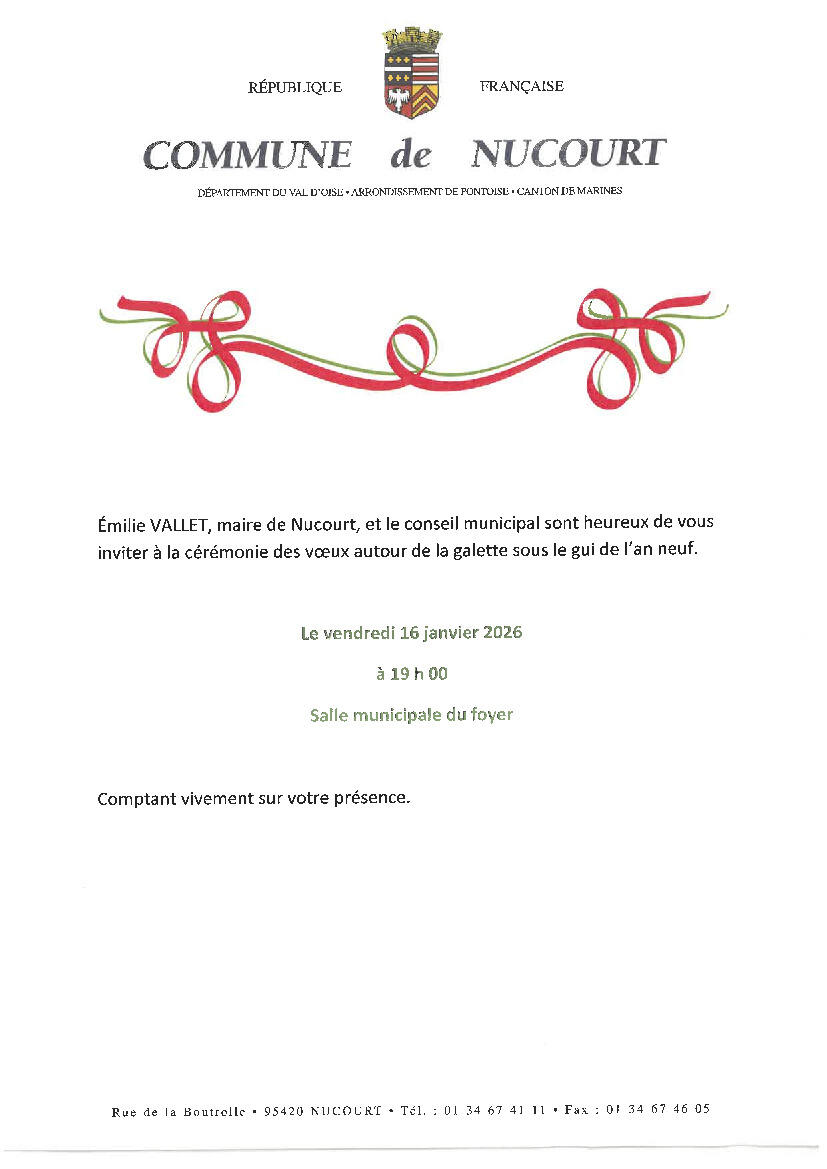 Nucourt : Invitation aux vœux du Maire le 16 janvier 2026