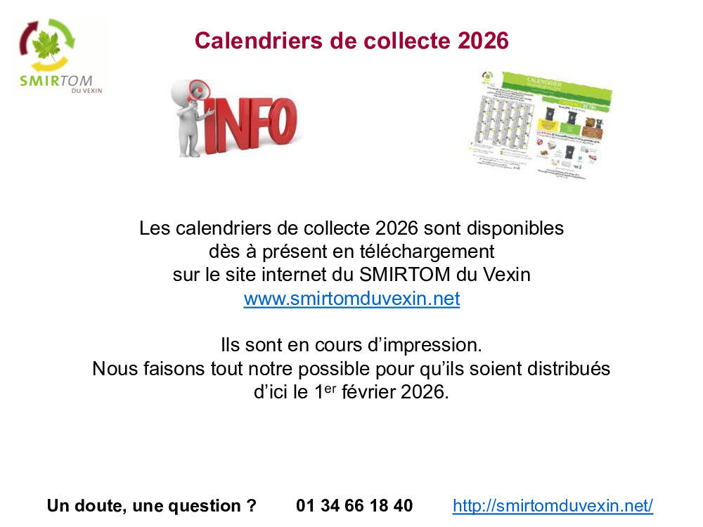 SMIRTOM du Vexin - Calendriers 2026
