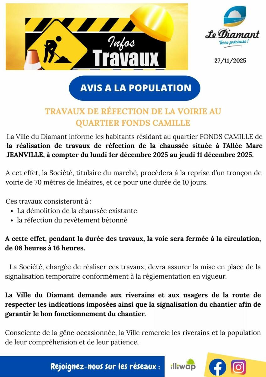 COMMUNIQUE DE LA VILLE DU DIAMANT