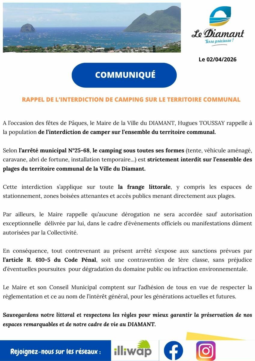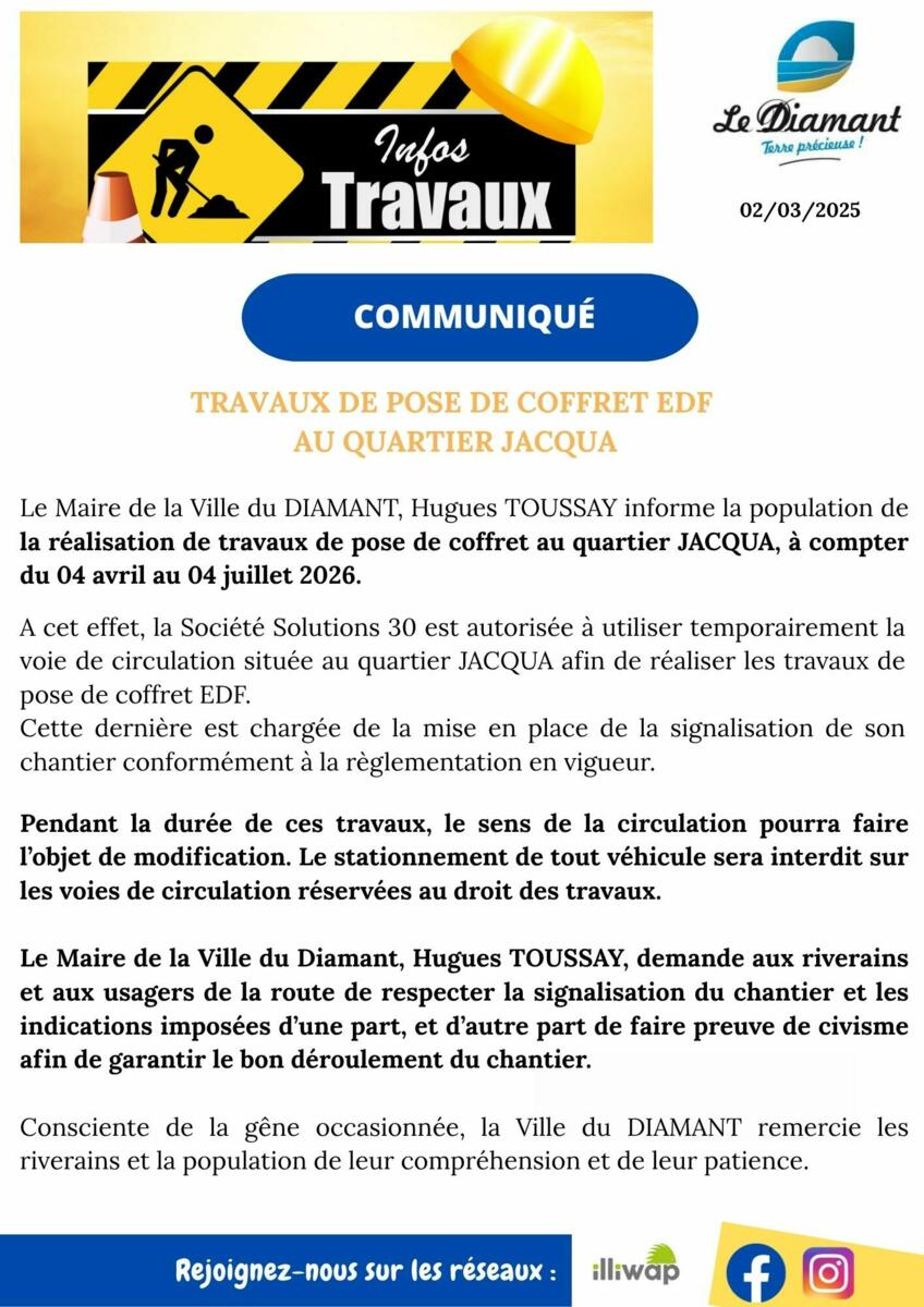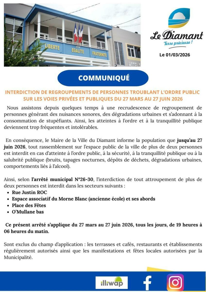 COMMUNIQUE DE LA VILLE DU DIAMANT
