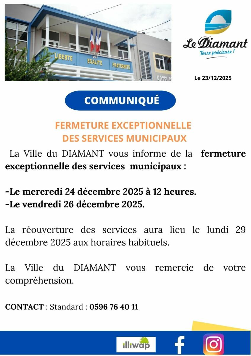 COMMUNIQUE DE LA VILLE DU DIAMANT