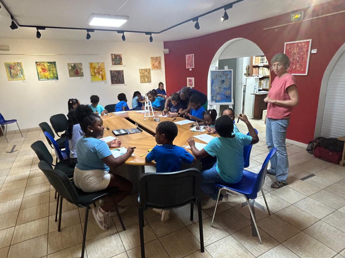 🎨Dans le cadre de l'exposition picturale de 𝙈𝙖𝙧𝙞𝙚-𝙀𝙡𝙞𝙨𝙚 𝙂𝘼𝙐 intitulée "𝑬𝒄𝒉𝒂𝒑𝒑𝒆́𝒆 𝒆𝒏 𝒄𝒐𝒖𝒍𝒆𝒖𝒓" à l'Espace Muséographique Bernard David, le Service Patrimoine a organisé en direction des élèves de l'école du Bourg, une "immersion dans l'art" de cette artiste autodidacte, ce lundi 24 novembre 2025.