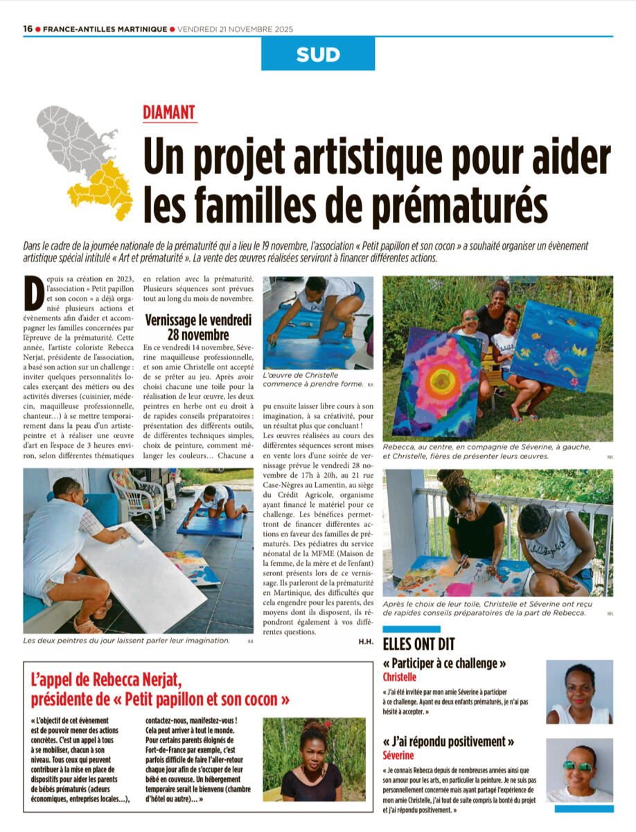 📰L'association "Petit papillon et son cocon" a organisé un évènement artistique dans le cadre de la journée nationale de la prématurité qui a eu lieu le 18 novembre 2025.