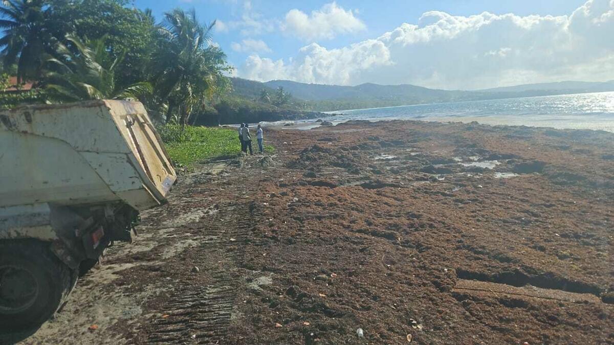 🚧Face à la présence de sargasses qui se sont échoués sur le site de l'Anse Caffard, les agents des Services Techniques procèdent depuis le lundi 20 avril 2026, à des travaux de dépollution et de nettoyage de la plage.