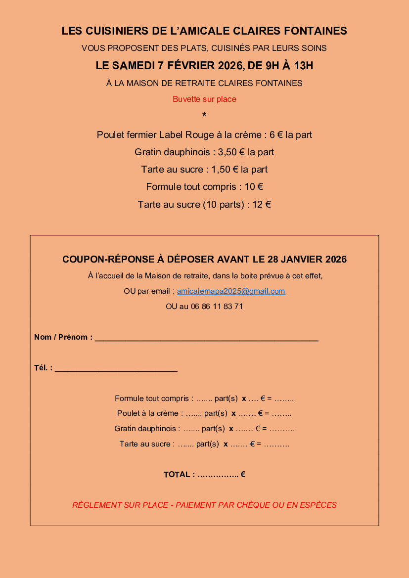 Vente de plats cuisinés le 7/02 à la MAPA 😋