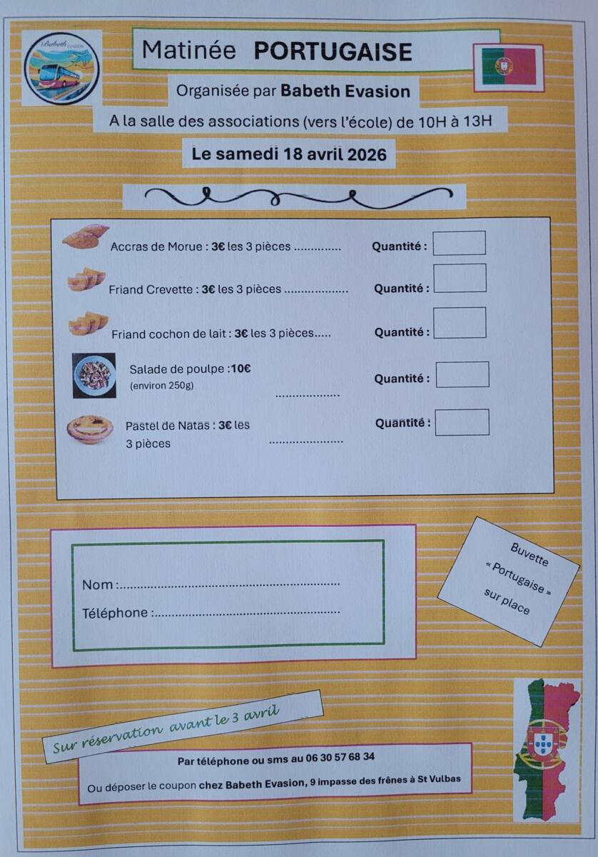 Votre mairie / Actualités / Matinée portugaise le 18/04 🇵🇹