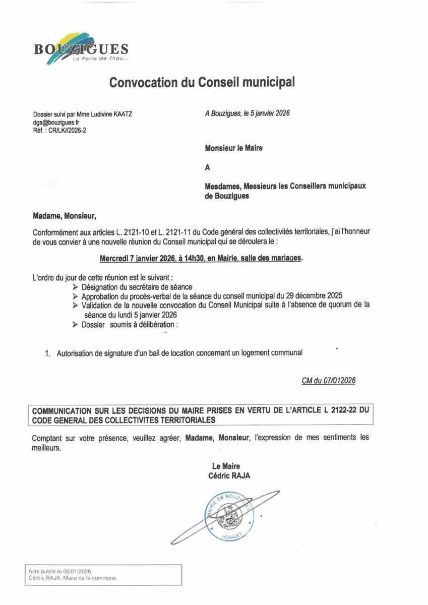 CONSEIL MUNICIPAL LE 5 JANVIER 2026
