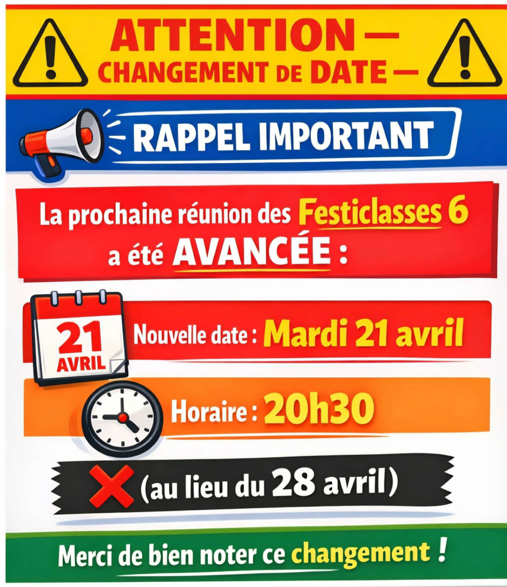FESTICLASSES 6 - CHANGEMENT DATE DE REUNION