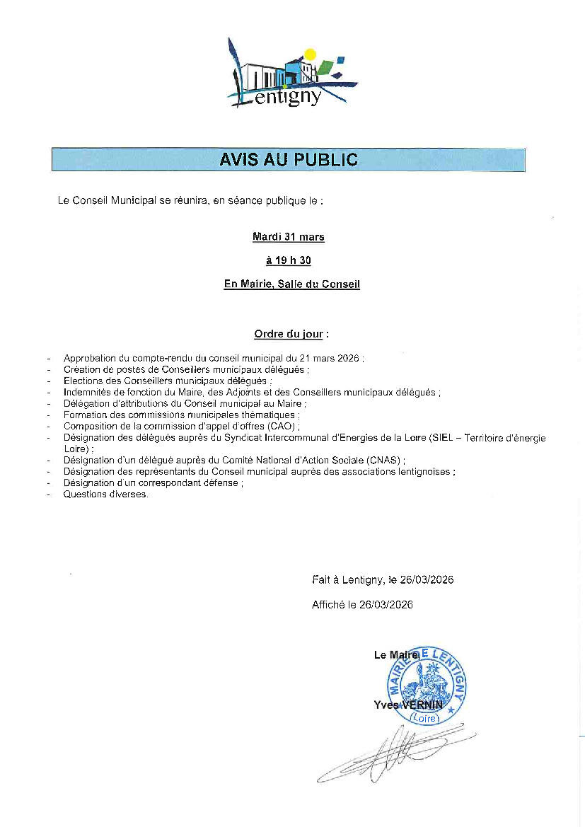 Toute l'actualité de Mairie de Lentigny