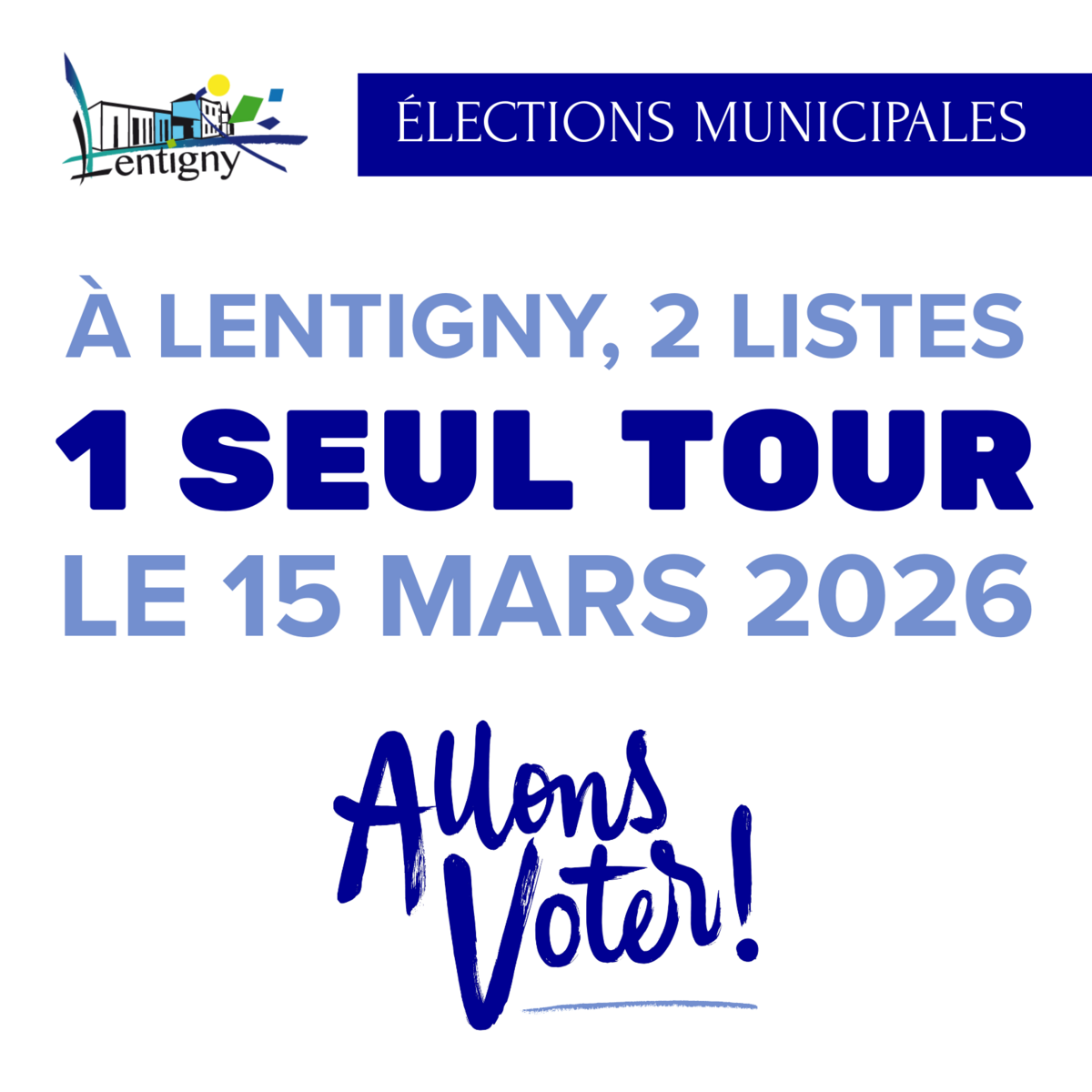 ⚠ À Lentigny, seules 2 listes se présentent, ce qui signifie qu’il n’y aura qu’1 seul tour, car plus de la moitié des suffrages exprimés se sera positionnée en faveur d’une des deux listes (majorité absolue).