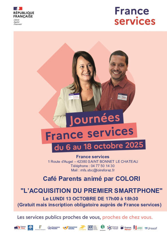 France Services de Saint-Bonnet-le-Château, propose une animation gratuite intitulée "L'acquisition du premier Smartphone" destinée aux parents :