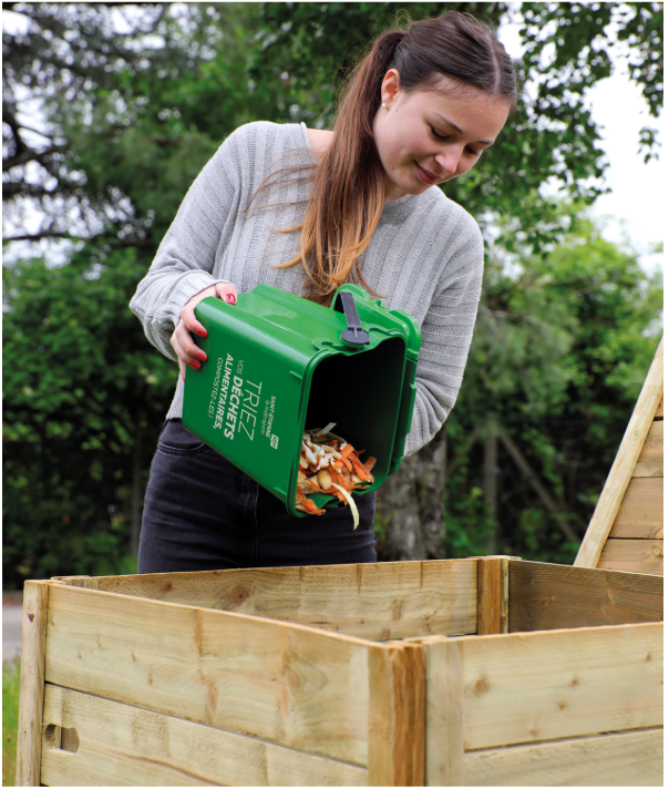 Votre kit de compostage, fourni gratuitement par Saint-Étienne Métropole, est composé d'un bio-seau, d'un composteur et d'un guide du compostage.