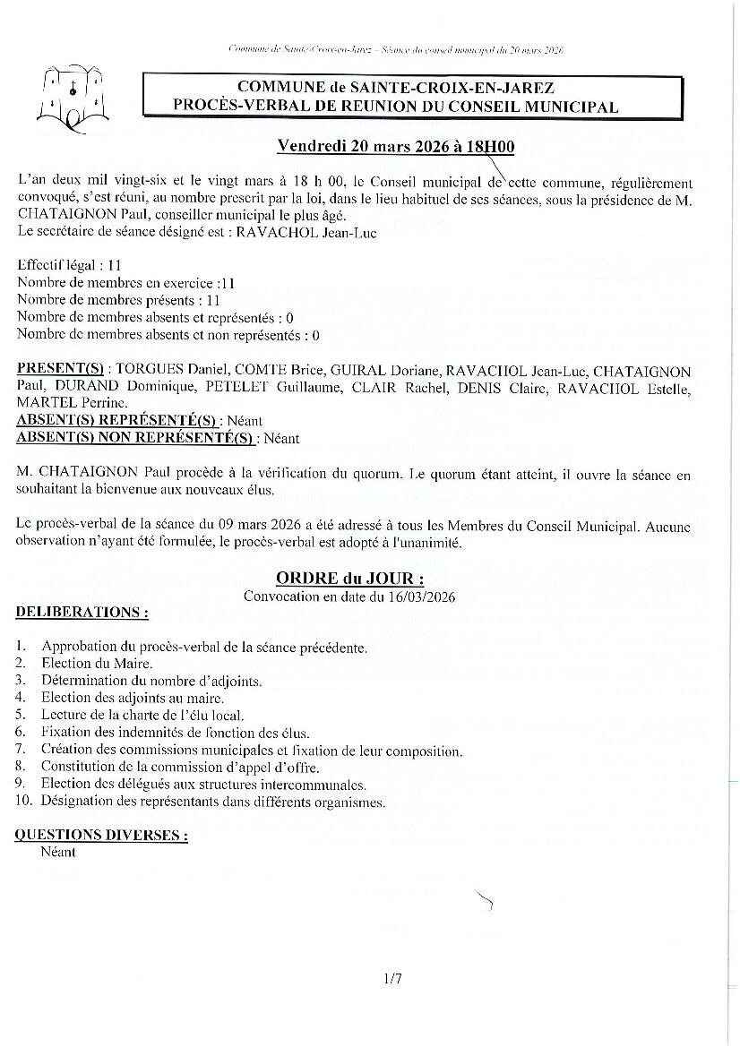 Procès-Verbal du Conseil Municipal du 20 mars 2026