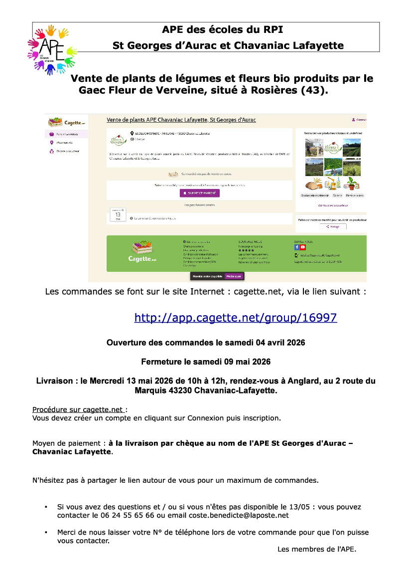 VENTE DE PLANTS PAR L'APE