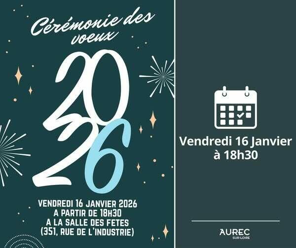 La municipalité d'Aurec-sur-Loire a le plaisir de vous inviter à la cérémonie des vœux 🥂