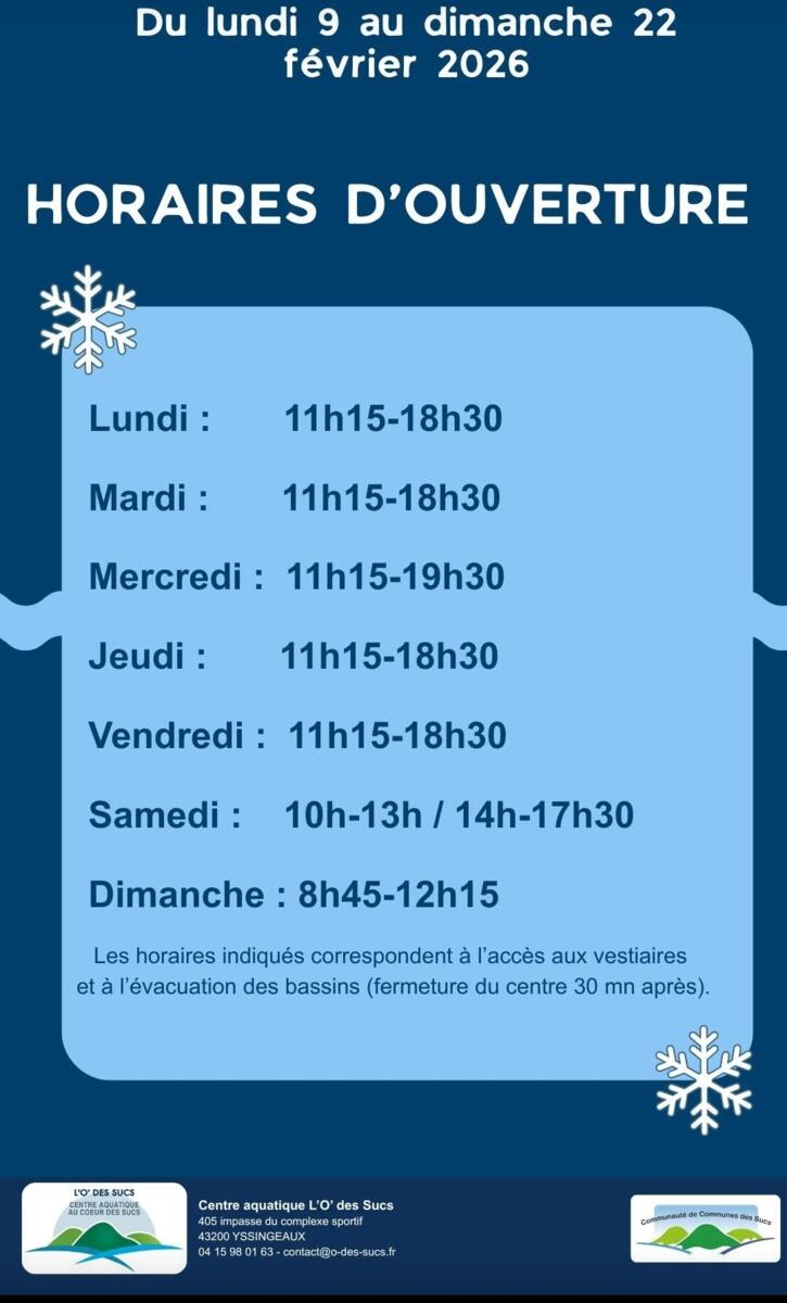 Piscine Intercommunale des Sucs: Horaires Vacances.
