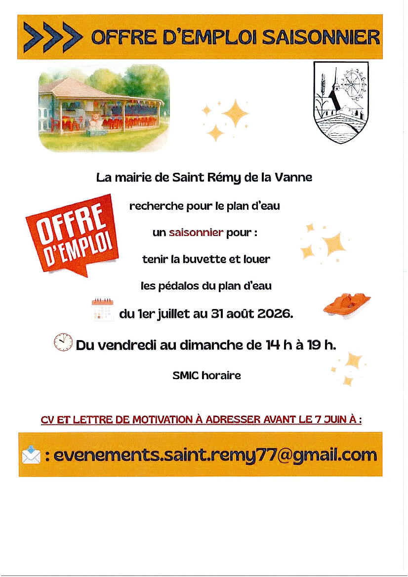Offre d'emploi saisonnier Mairie de St Rémy de la Vanne