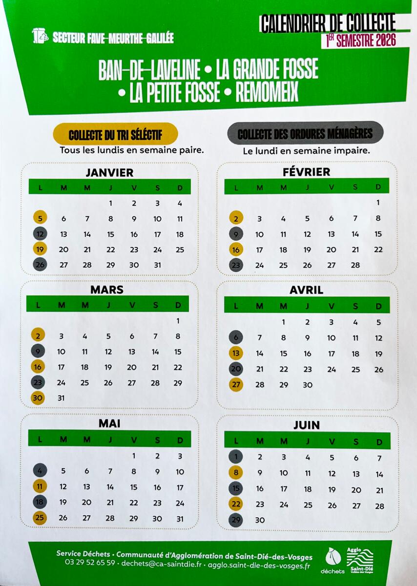 Calendrier de collecte des déchets ménagers