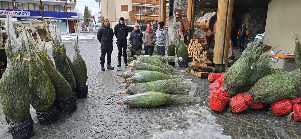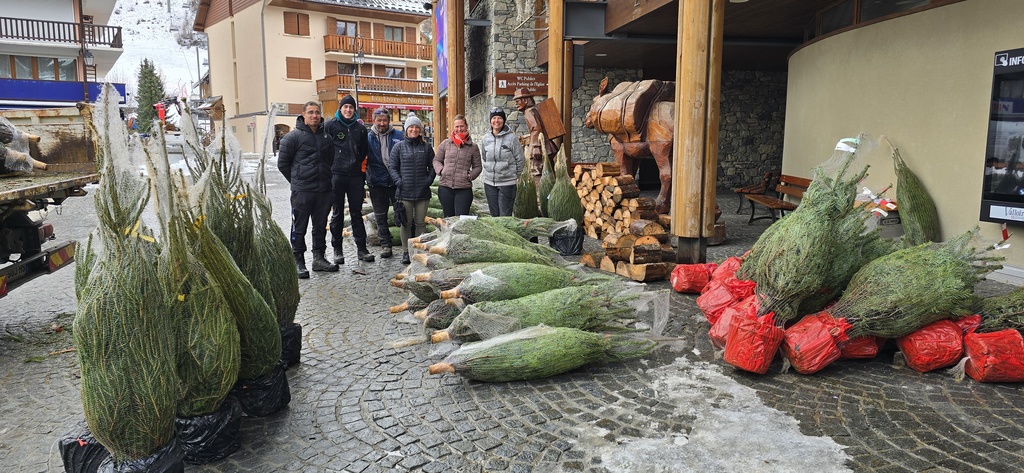 L'association des parents des enfants de Valloire (APEV) s'est engagée dans la commande et la gestion des livraisons de nos sapins de Noël, aidés par les services techniques de la communes.