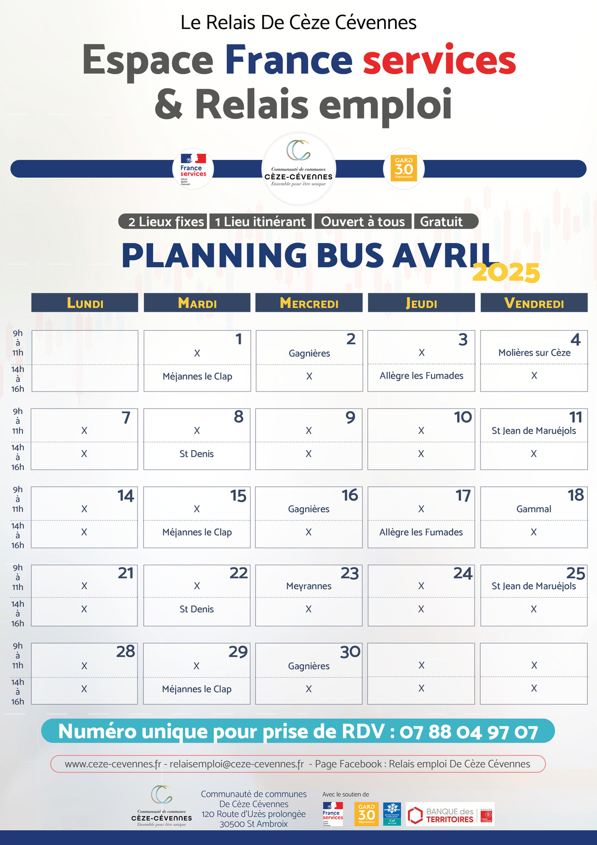 Retrouvez ci dessous le planning du bus informatique pour le mois d'avril