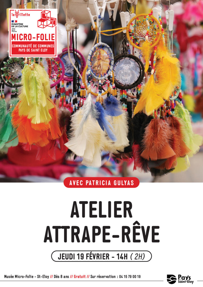 Atelier attrape-rêve avec Patricia Gulyas (actuellement exposée au musée) : découverte de l’objet, son histoire et ses symboliques puis création d’un attrape-rêve.