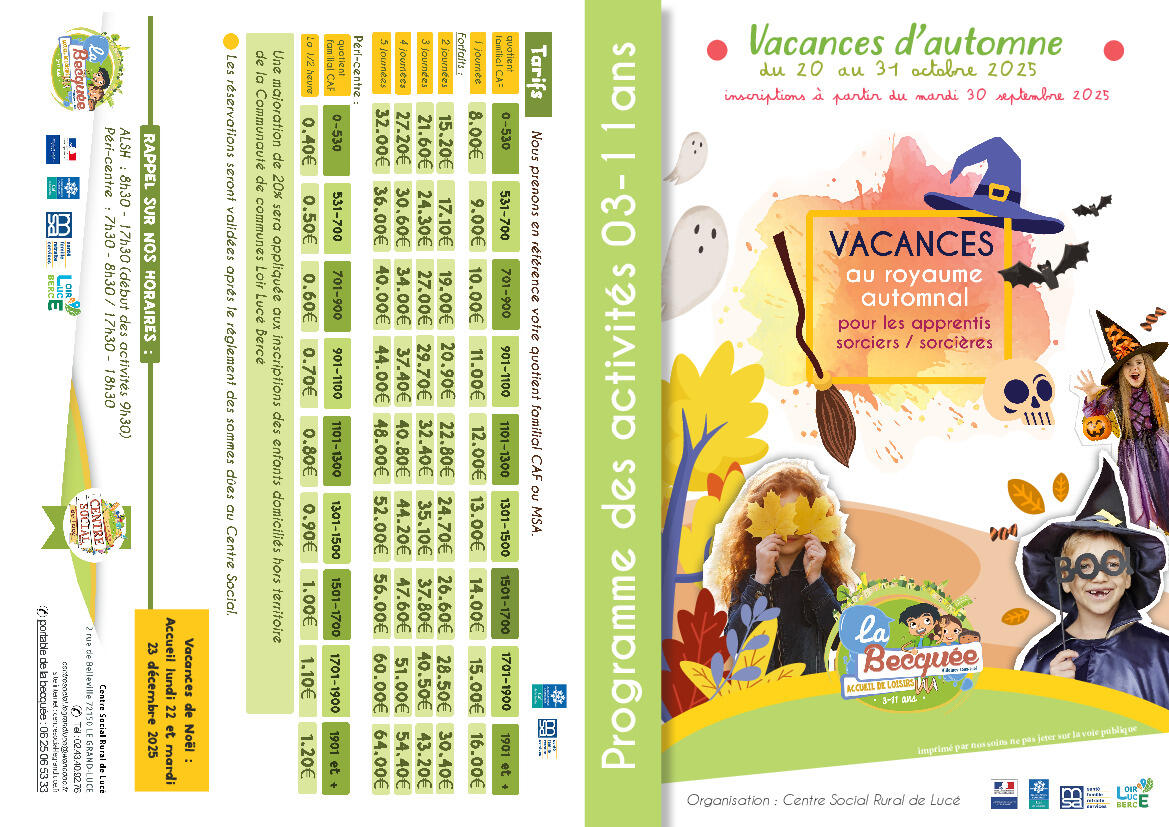 Programme des vacances d'automne pour les 03-11 ans. Inscriptions à partir du mardi 30 septembre