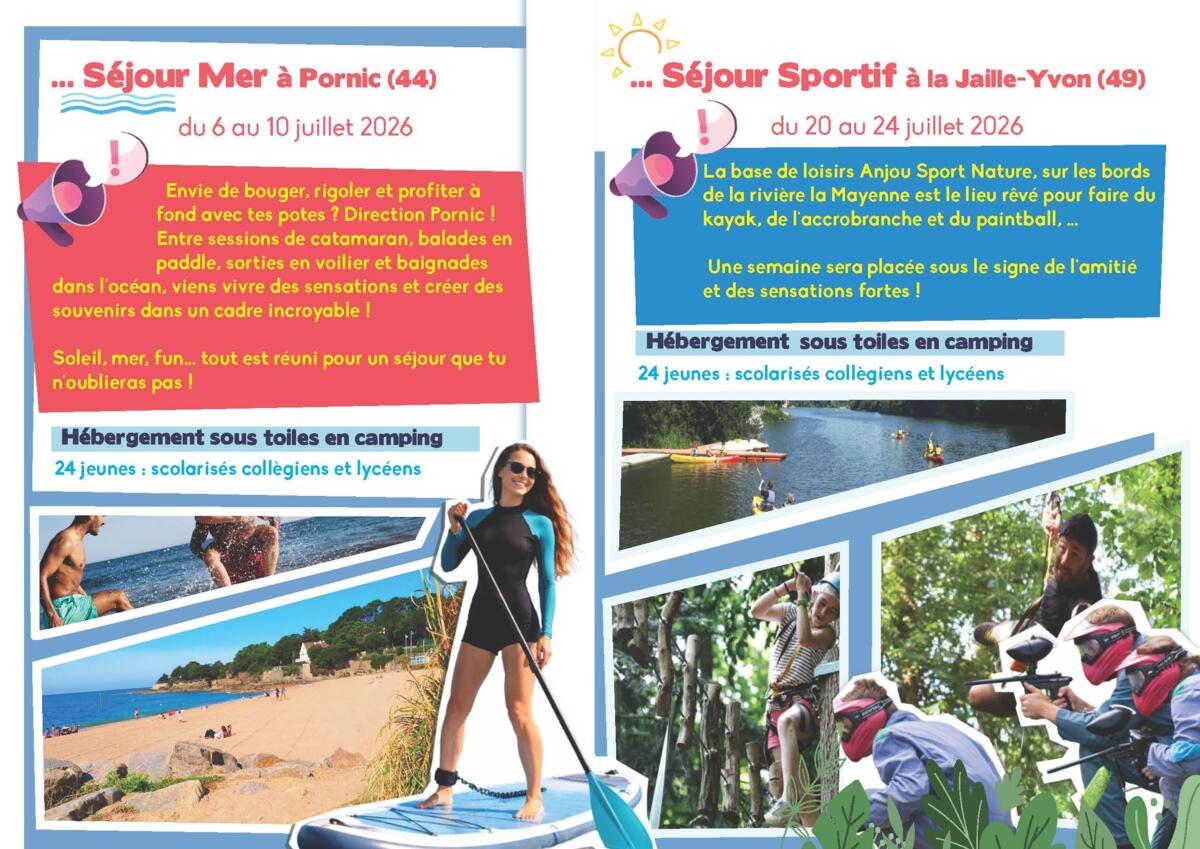 Nous sommes heureux de vous présenter les séjours estivaux proposés aux jeunes pour l’été 2026 !