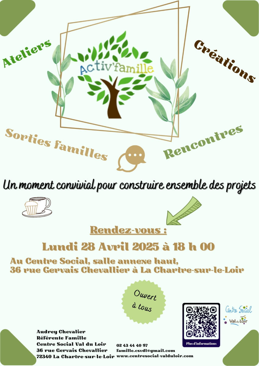 Le service famille organise une rencontre Activ'famille : lundi 28 Avril 2025 à 18h00.