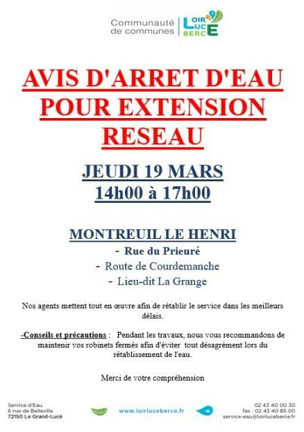 Coupure d'eau Rue du Prieuré - Montreuil le Henri