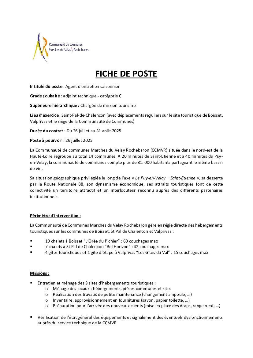 (avec déplacements réguliers sur le site touristique de Boisset, Valprivas et le siège de la Communauté de Communes)