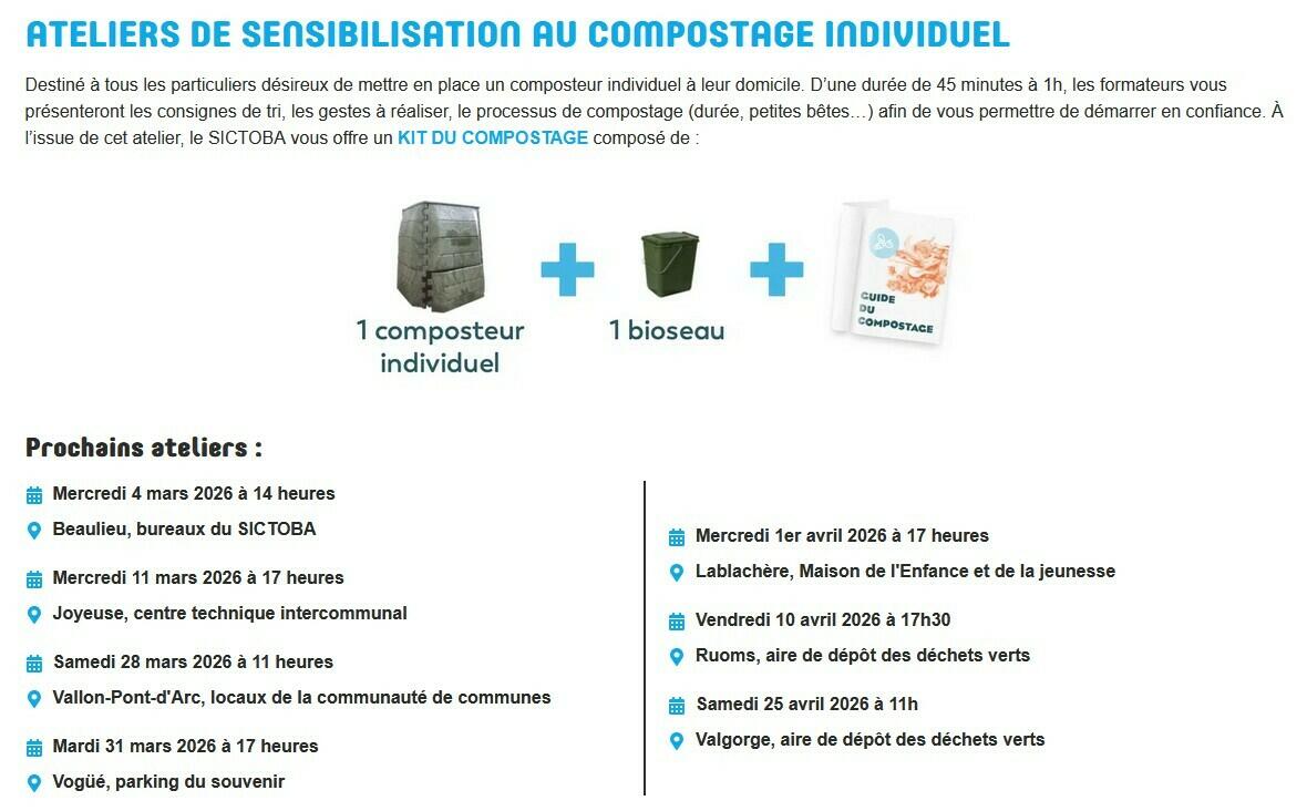 Ainsi que le lien pour s’inscrire : https://sictoba.fr/compostage/ateliers-et-formations/