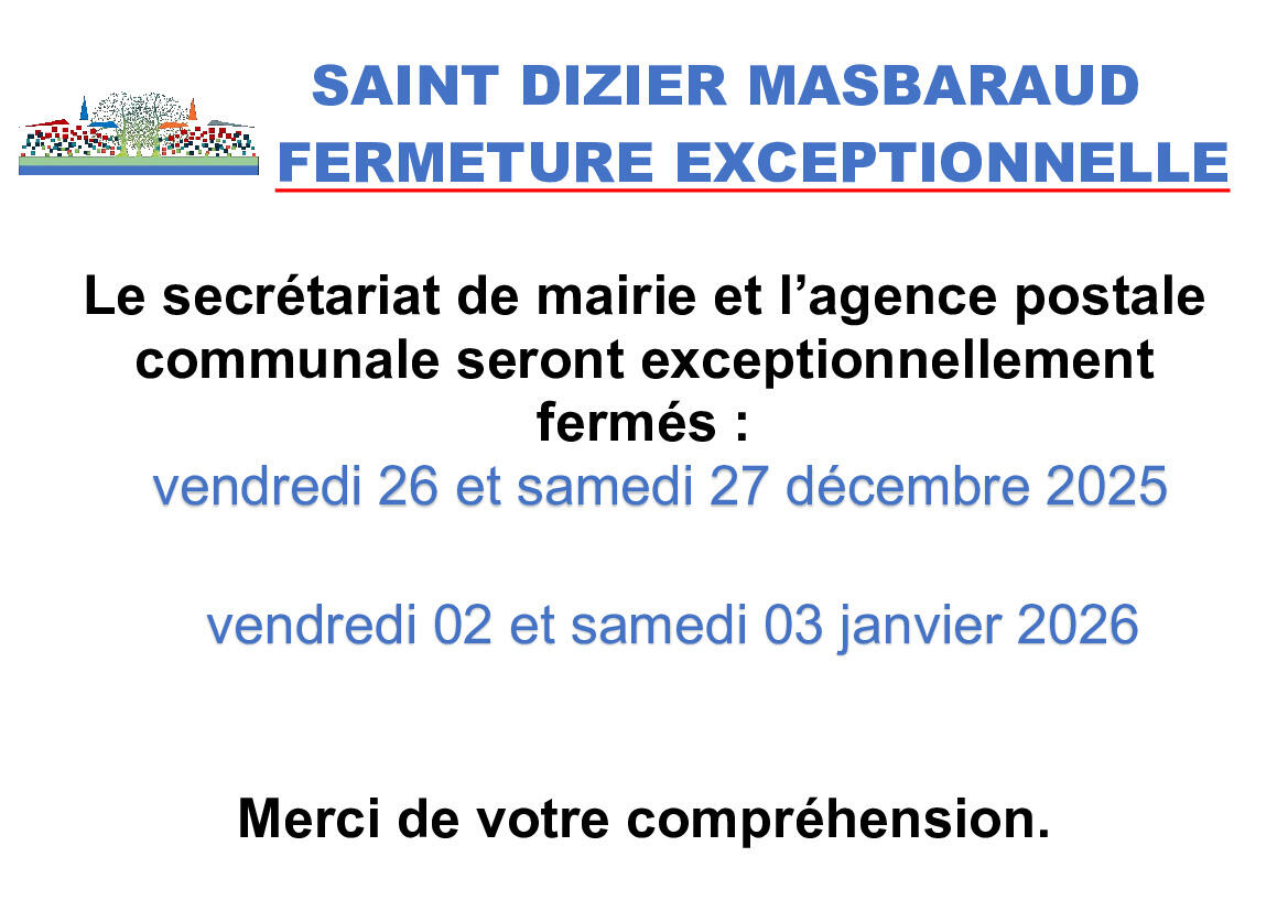 Toute l'actualité de Mairie de Saint-Dizier-Masbaraud