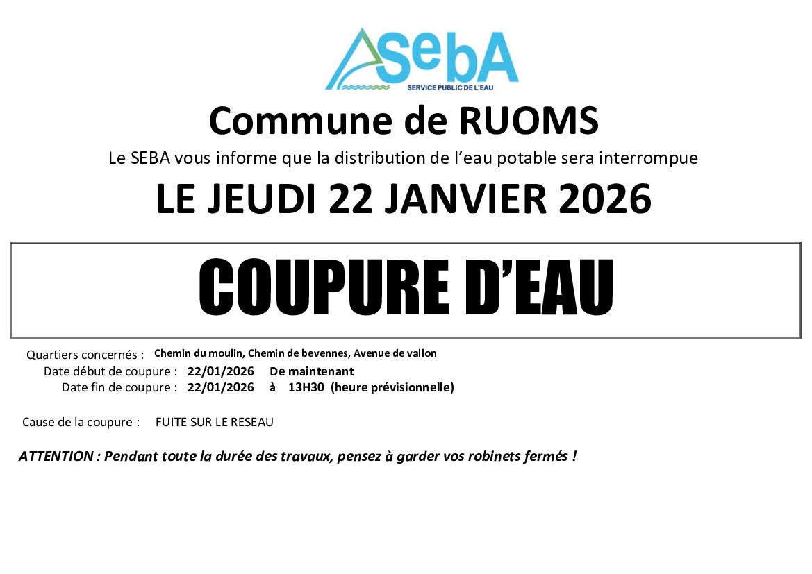 AVIS DE COUPURE D'EAU RUOMS LE 22/01/2026