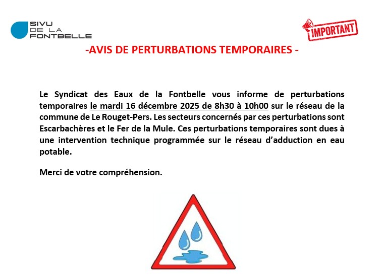 AVIS DE PERTURBATIONS TEMPORAIRES LE ROUGET-PERS