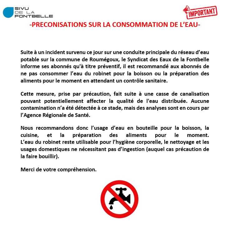 COUPURE D'EAU TEMPORAIRE SUR PLUSIEURS COMMUNES