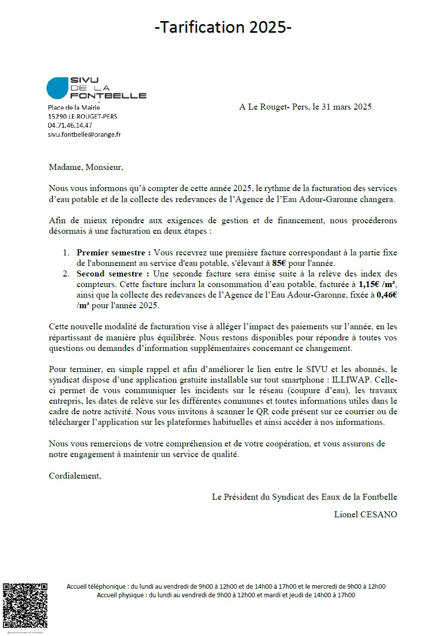 TARIFICATION 2025 ET RÉALISATIONS DE L'ANNÉE 2024