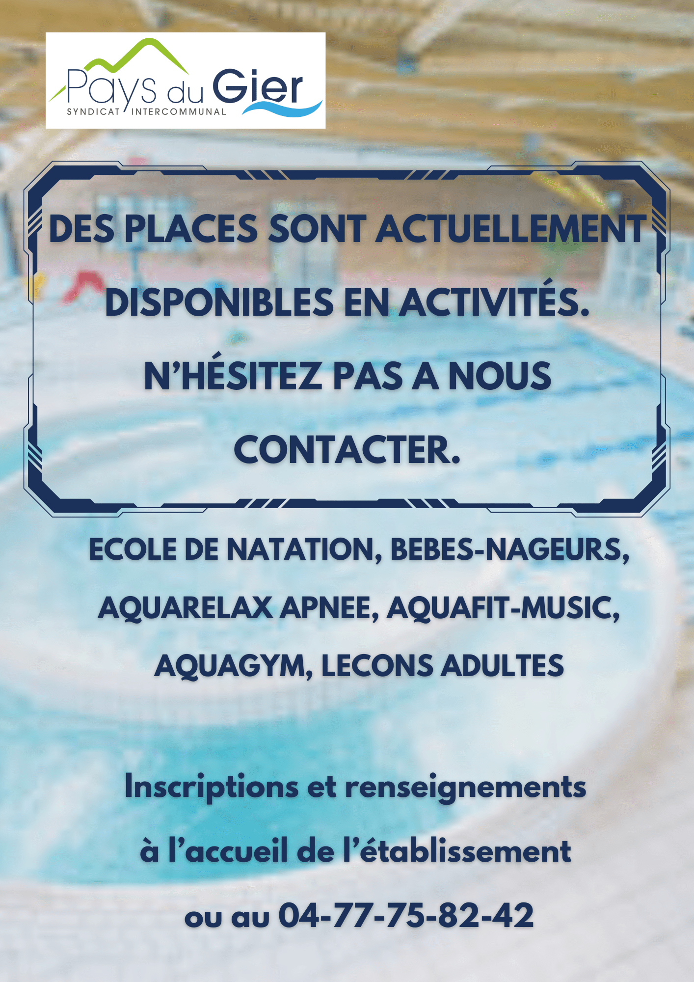 / PLACES LIBRES EN ACTIVITES AU CENTRE NAUTIQUE ANDRE CHAZALON