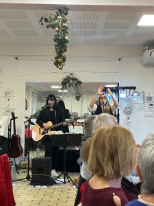 Cette rencontre sympathique a donné à chacun l’occasion de se revoir et discuter aux rythmes des mélodies interprétées par Virginie Blanco-Le Millour et jouées par son amie guitariste Karine Solé.