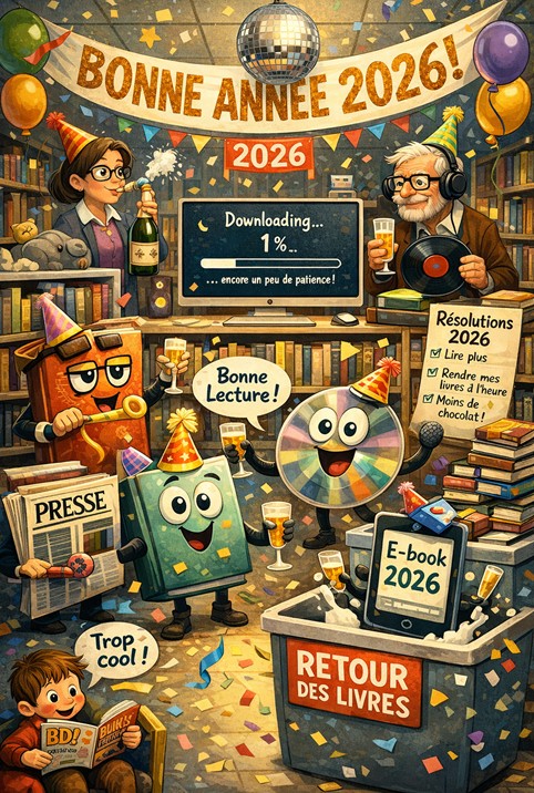 Toute l’équipe des médiathèques intercommunales vous souhaite une bonne année 2026 !Et vous invite à diverses animations qui auront lieu dès janvier :