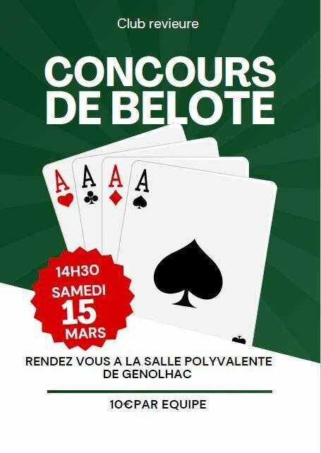 Le Club Revieure organise un Concours de Belote ouvert à tous,