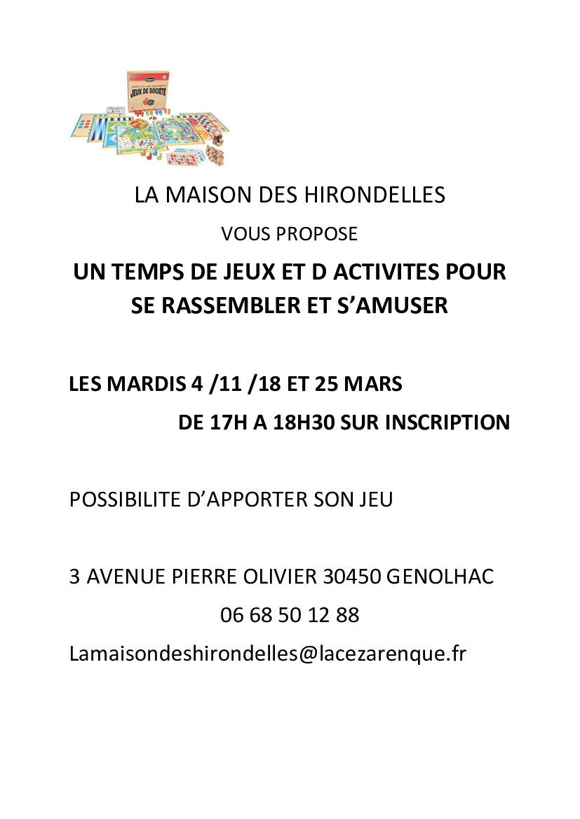 La maison des hirondelles vous propose un temps de jeux et d'activités pour se rassembler et s'amuser.