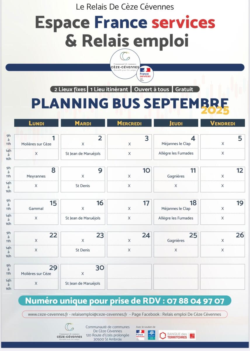 Bus informatique 8/28/25 Petit changement de jour pour le bus Le relais de Ceze Cevennes A partir de Septembre c est les lundis
