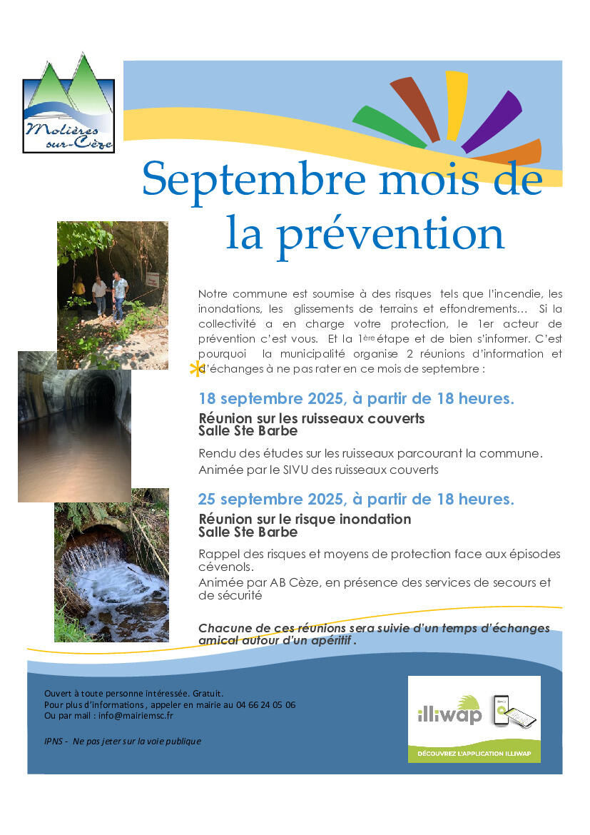 Afin de vous tenir informés des risques et comment les prévenir, 2 réunions sont prévues en septembre .