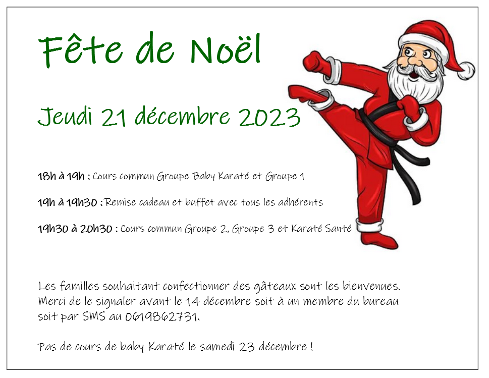 N'oubliez pas : ce jeudi 21 décembre 2023 a lieu la fête de Noël du club!