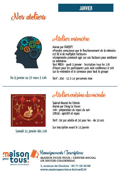 La Maison Pour Tous et l'Accueil de Loisirs seront fermés du 24 décembre au 2 janvier 2023 inclus.