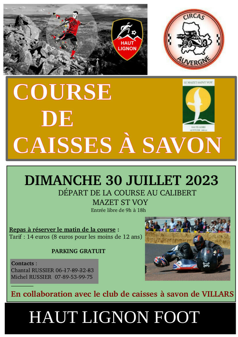 Depuis 5 ans, nous avons noué un partenariat avec le CIRCAS AUVERGNE (Comité Inter-Régional de Caisse à Savon) pour l'organisation de manches officielles de courses de caisses à savon au Mazet St Voy.