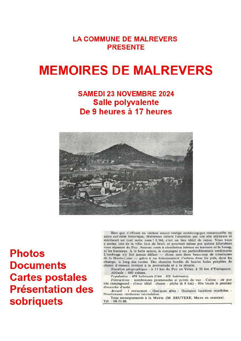 L'association Mémoire de Malrevers organise