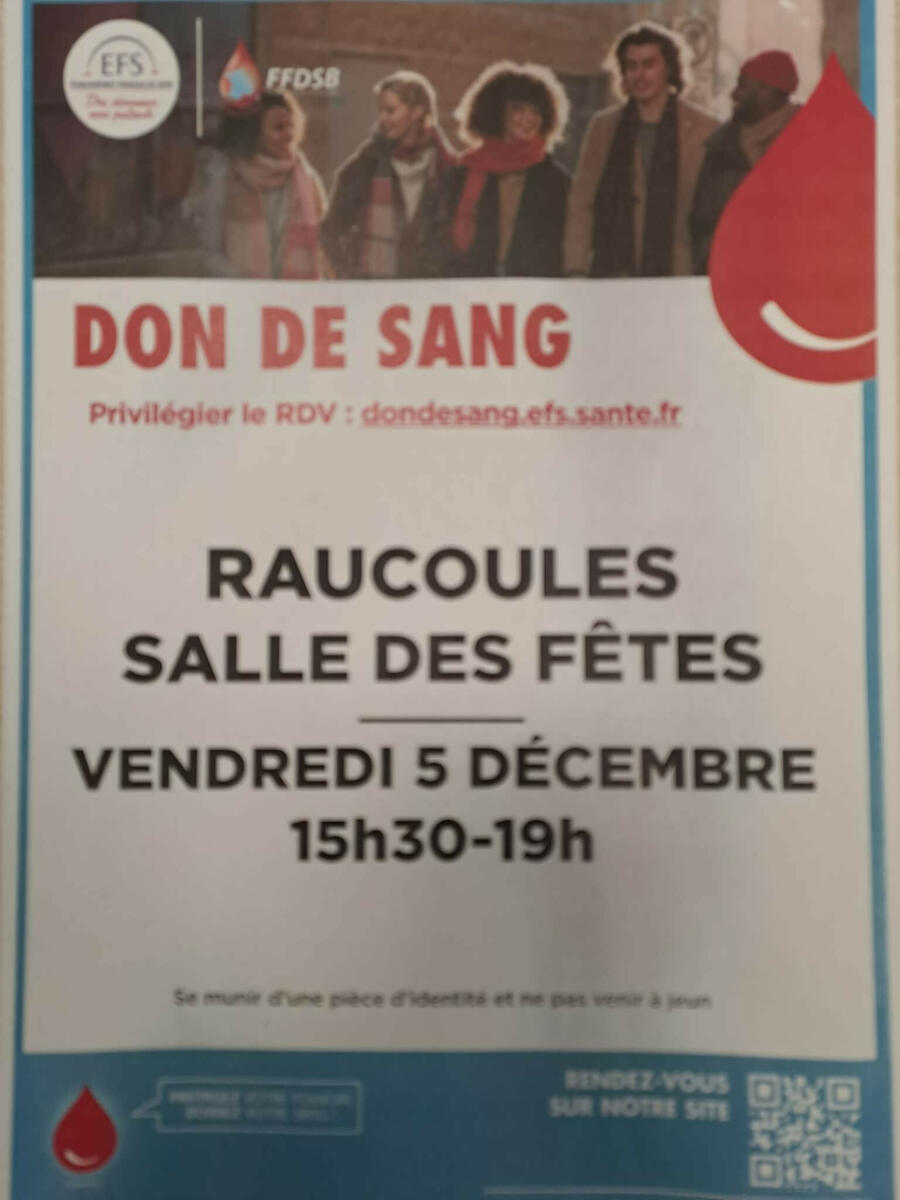 Your town hall / News / Don du Sang Raucoules vendredi 5 décembre
