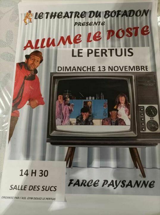 RDV Dimanche 13 novembre à  14 h 30 Salle des Sucs au Pertuis avec "Allume le poste" farce paysanne interprétée par la troupe du Bofafon.